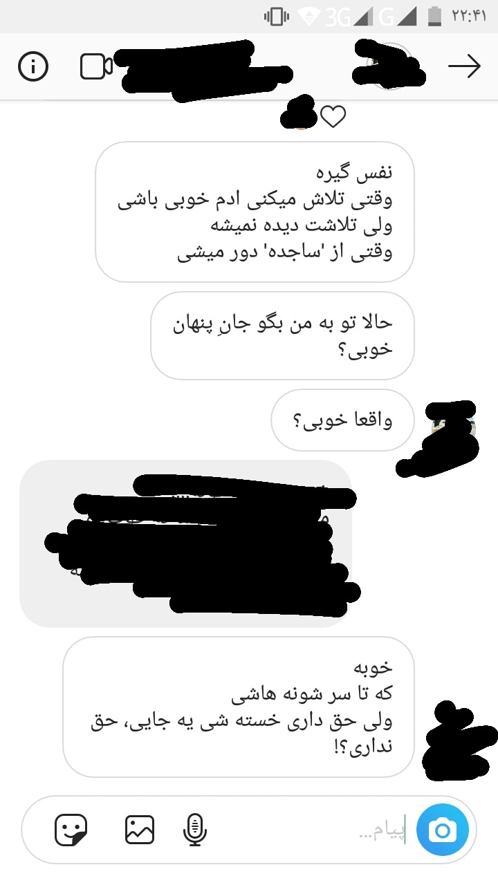 و من قاعدتا اون شخص سومم که پامو انداختم روی پامو شعر میخونم و عکس میگیرم و از اینکه ساعت پنج میرم شب شعر از خودم خرسندم.