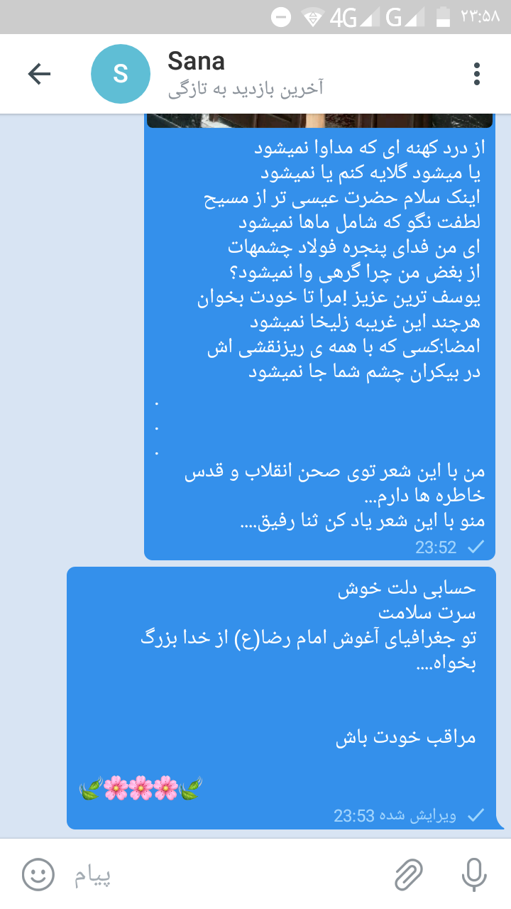 میخواستم نظرش را پاک کنم یا اینکه حداقل خودم جواب داده باشم ، بعد فکر کردم که دیر یا زود باید همه چیز ساجده را قبول کنی!